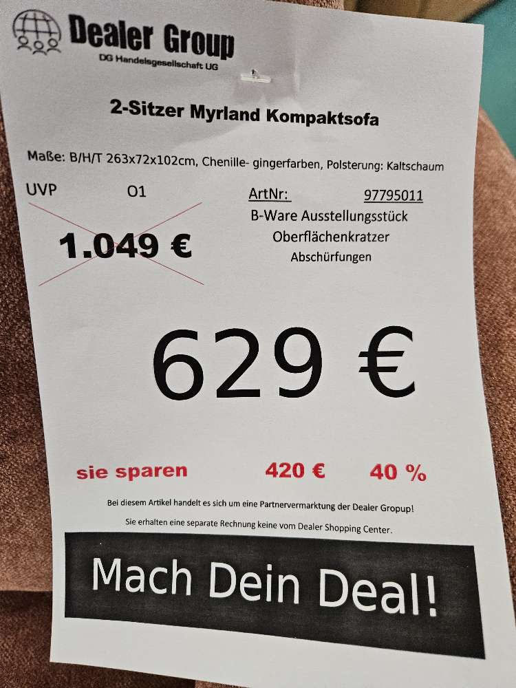 2 Sitzer Kompaktsofa Couch Myrland statt 1049€