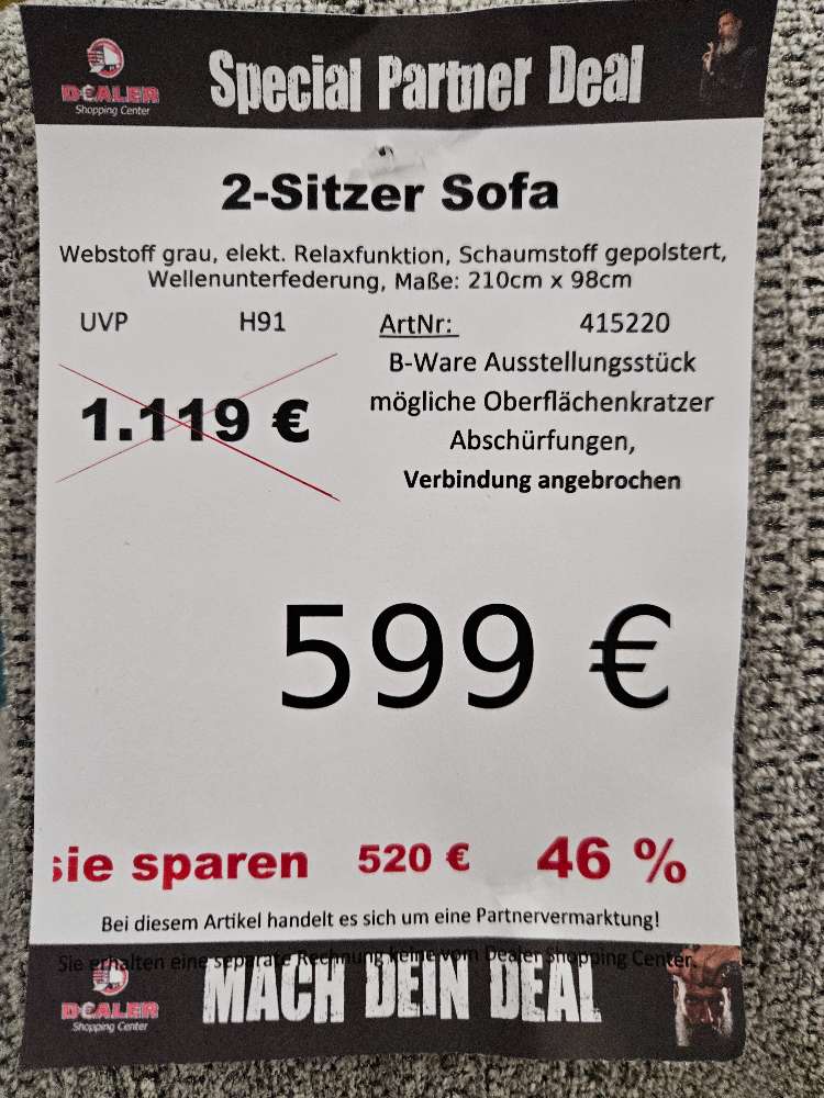 2 Sitzer Sofa Couch Webstoff Grau Relaxfunktion statt 1119€