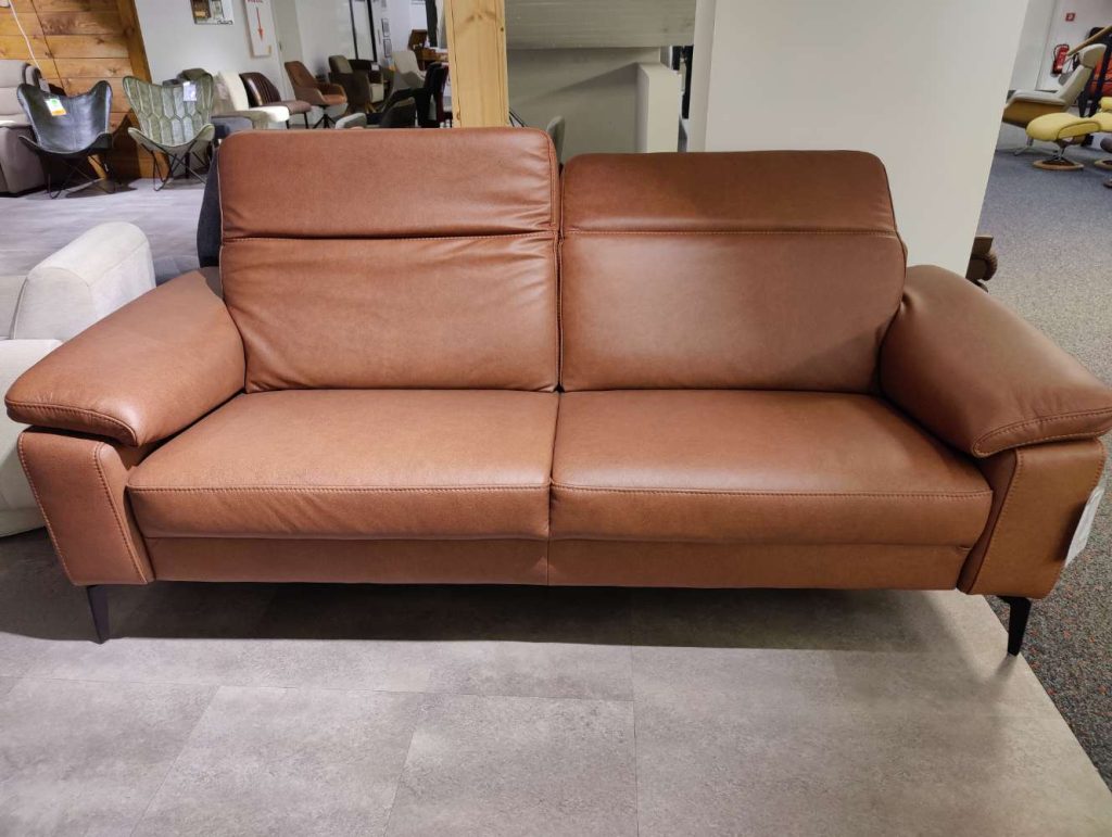 BemerkungDas INTERLIVING 3-Sitzer-Sofa IL 4065 präsentiert sich als klassisches und zugleich modernes Möbelstück, das in jedem Wohnzimmer ein Statement setzt. In der eleganten Farbnuance Tabac gehalten, strahlt das Sofa eine zeitlose Wärme und Raffinesse aus. Hergestellt aus hochwertigem Echtleder, verspricht es nicht nur langlebige Qualität, sondern auch ein luxuriöses Sitzgefühl. Die funktionellen Highlights dieses Sofas sind die verstellbaren Kopfpolster und Armteile, die neben dem stilvollen Design auch individuell anpassbaren Komfort bieten. Die edlen schwarzen Metallfüße verleihen dem Möbelstück eine stabile Basis und unterstreichen das zeitgemäße Erscheinungsbild. Mit einer Breite von 238 cm, einer Tiefe von 107 cm und einer flexiblen Höhe von 88 bis 108 cm bietet das Sofa großzügigen Platz für entspannte Stunden. Als Ausstellungsware von INTERLIVING kombiniert es Funktionalität und Stil und wird so zum Herzstück Ihrer Wohnlandschaft.