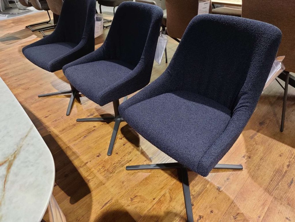 BemerkungEntdecken Sie die Eleganz und den Komfort des Esszimmerstuhls Lani von VENJAKOB. Dieses Set, bestehend aus sechs edlen Stühlen, bringt frischen Wind in Ihr Esszimmer und überzeugt durch ein zeitloses Design in einem tiefen, satten Dunkelblau. Der hochwertige Bouclestoff aus 100% Polyester verleiht den Stühlen nicht nur eine ansprechende Optik, sondern auch eine angenehme Haptik, die zum langen Verweilen einlädt. Diese Ausstellungsware überzeugt zudem durch ihre erstklassige Verarbeitung und die raffinierte Drehschwingfunktion, die Bewegungsfreiheit und Flexibilität bietet.
