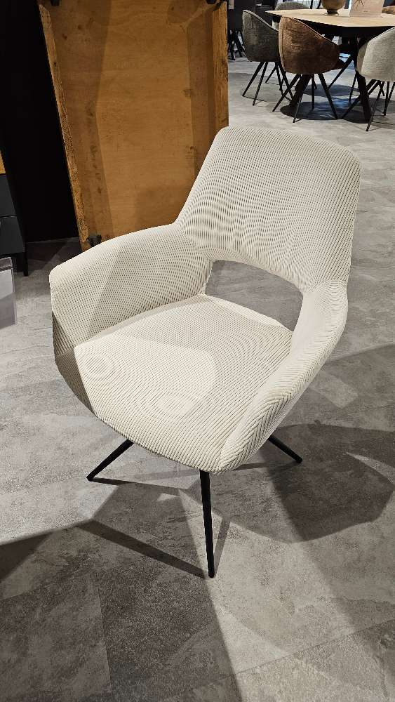 BemerkungDer Esszimmerstuhl Modell 5605 von INTERLIVING lädt mit seinem eleganten Design und hochwertigen Materialien zu einem stilvollen Speiseerlebnis ein. Der Stuhl ist aus einem luxuriösen Cordstoff in der Farbe "cream" gefertigt, der zu 95% aus Polyester und 5% Nylon besteht. Diese Materialkombination sorgt für Langlebigkeit und ein angenehmes Sitzgefühl. Die robusten Eisenfüße in Schwarz verleihen dem Stuhl nicht nur Stabilität, sondern setzen auch einen modernen Akzent. Eine besondere Funktion des Stuhls ist seine Fähigkeit, sich zweimal um 360° zu drehen, wobei eine automatische Rückstellung für Komfort und Flexibilität sorgt. Mit den Maßen 63 cm Breite, 89 cm Höhe und 63 cm Tiefe passt der Stuhl perfekt in jedes Esszimmer. Da es sich um Ausstellungsware handelt, besticht das Modell durch ein hervorragendes Preis-Leistungs-Verhältnis und eignet sich ideal für diejenigen, die nicht nur Wert auf Funktionalität, sondern auch auf zeitloses Design legen.
