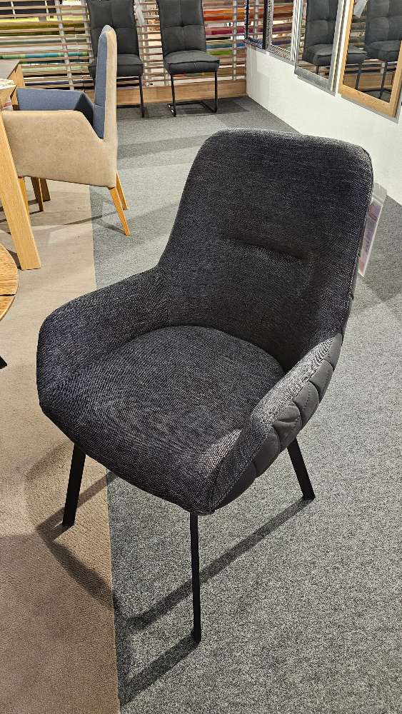 Dieses Ausstellungsstück überzeugt durch seinen hohen Sitzkomfort. Der gepolsterte Sitz bietet eine legere Sitzpolsterung, die zusammen mit einer Sitzhöhe von etwa 49 cm und einer Sitztiefe von ca. 45 cm für ein angenehmes Sitzerlebnis sorgt. Die Konstruktion ist mit einem stabilen 4-Fuß-Metallgestell in Schwarz versehen und verfügt über eine praktische Drehfunktion, die zusätzliche Flexibilität bietet. Mit den Maßen von ca. 55x87x50 cm ist der Stuhl kompakt und dennoch komfortabel. Der ST-0713 vereint modernes Design mit hoher Funktionalität und ist eine ausgezeichnete Wahl für stilbewusste Haushalte.