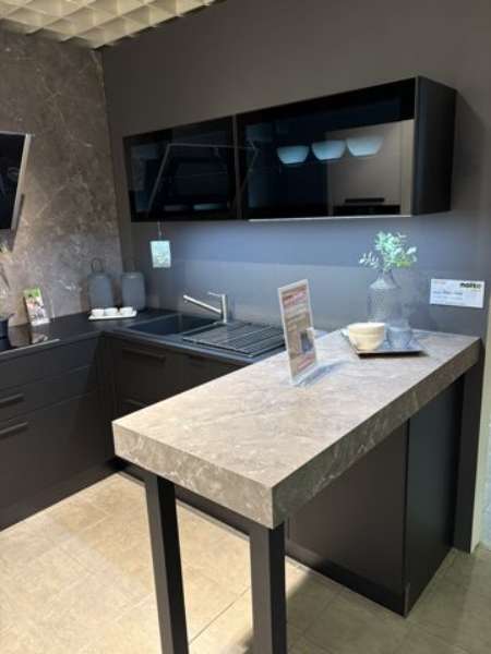 Bemerkung Entdecken Sie die moderne U-Küche PLUS / FEEL von NOLTE, die Eleganz und Funktionalität in einem beeindruckenden Design vereint. Diese Ausstellungsküche besticht durch ihre stilvolle Kombination aus schwarzem Softmatt und klaren weißen Elementen, die einen zeitgemäßen Look erzeugen, der sich nahtlos in jedes moderne Interieur einfügt. Die großzügigen Maße von 2,41 Metern Breite und 2,38 Metern Länge gestalten diese U-Küche als perfekte Lösung für all Ihre kulinarischen Abenteuer. Die durchdacht gestaltete Arbeitsfläche mit einer komfortablen Höhe von 93,5 cm ermöglicht eine angenehme Arbeitsumgebung und lädt dazu ein, Kochleidenschaften auszuleben. Die Tiefe der Insel von 55 cm bietet ausreichend Platz für die Zubereitung Ihrer Lieblingsgerichte. Die elegante Theke mit einer Höhe von 105 cm fungiert als perfekter Ort für den morgendlichen Kaffee oder das Abstellen von Rezeptbüchern. Die Gesamthöhe von 2,10 Metern sorgt dafür, dass der Stauraum optimal genutzt wird, während das moderne Design den Raum nicht überladen wirken lässt. NOLTE KÜCHE hat mit dieser U-Küche nicht nur ein stilvolles, sondern auch ein praktisches Konzept entwickelt, das Funktionalität und Ästhetik harmonisch vereint. Erleben Sie die Symbiose aus Design und Funktion mit der PLUS / FEEL, die sich perfekt für zeitgemäße Wohnbereiche eignet.