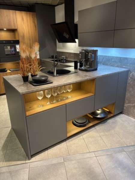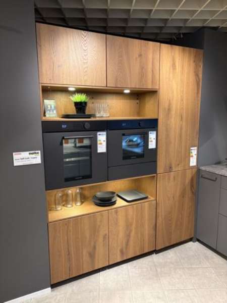 BemerkungDiese moderne Ausstellungsküche von NOLTE KÜCHE besticht durch ihre elegante Kombination aus Quarzgrau in softmattem Finish und Akzenten in Eiche Trüffel. Die klare Linienführung und zeitgemäße Stilrichtung machen sie zu einem echten Blickfang. Die Küche zeichnet sich durch ihre funktionale Insel aus, die eine großzügige Arbeitsfläche mit einer Höhe von 99,5 cm bietet. Die kompakte Zeile von 1,80 m und der L-förmige Schenkel mit den Maßen 2,80 x 2,16 m bieten ausreichend Platz für kreatives Kochen und gemütliche Zusammenkünfte. Die gesamte Küche erreicht eine Höhe von 2,33 m und fügt sich harmonisch in moderne Wohnräume ein, während die sorgfältig ausgewählten Materialien und Farben ein Gefühl von Wärme und Eleganz ausstrahlen. Entdecken Sie die perfekte Symbiose aus Stil und Funktionalität in dieser hervorragenden Inselküche.