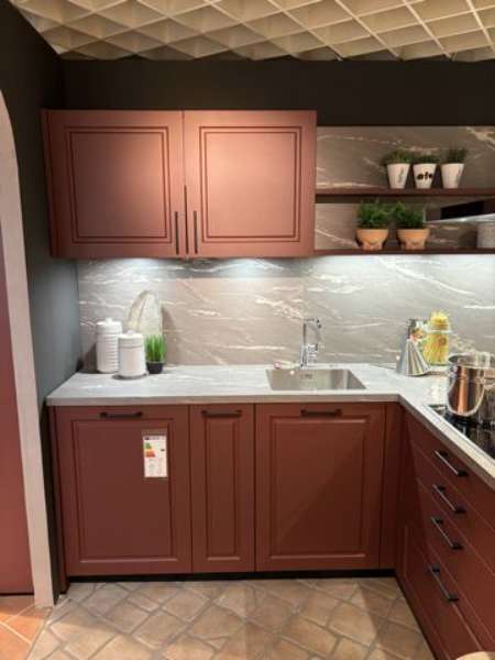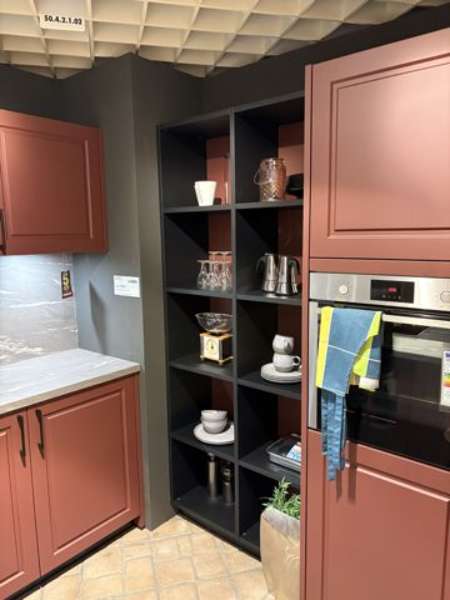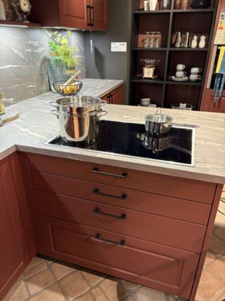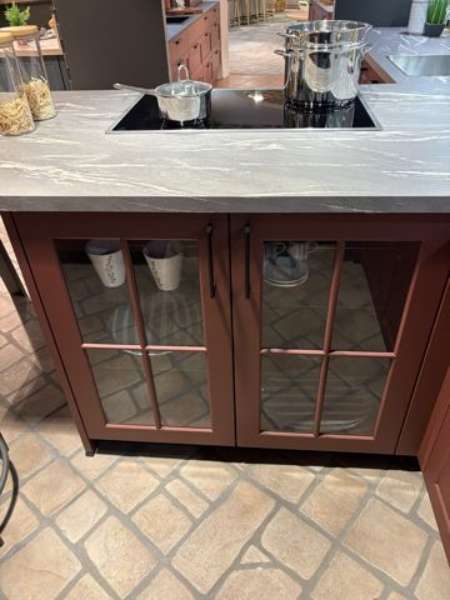 BemerkungDie Classic Matt Küche von SCHÜLLER KÜCHEN präsentiert sich in einem stilvollen, indischroten samtmatt Finish, das sowohl Eleganz als auch Wärme in Ihren Küchenraum bringt. Diese Ausstellungsküche beeindruckt durch ihr modernes Design, das durch klare Linien und eine durchdachte Anordnung der Elemente unterstrichen wird. Mit einer großzügigen T-Form, die eine beeindruckende Insel mit den Maßen von 2,49 m Länge und 1 m Tiefe umfasst, bietet sie nicht nur ausreichend Platz zum Kochen, sondern wird auch zu einem gesellschaftlichen Mittelpunkt.