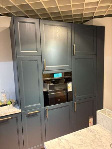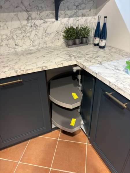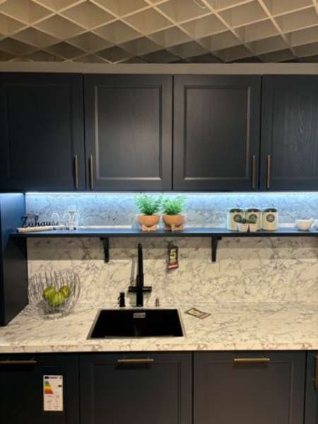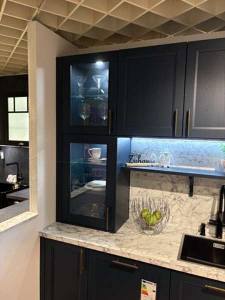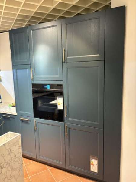 BemerkungDie Finca Satin Pore von SCHÜLLER KÜCHEN vereint zeitlose Eleganz und ländlichen Charme in einer stilvollen U-Küche, die ideal für jeden Wohnraum konzipiert ist. Mit ihrer tiefblauen Esche-Oberfläche im Satin-Finish strahlt sie eine ruhige und zugleich einladende Atmosphäre aus. Ihr raffiniertes Design findet Ausdruck in den wohlproportionierten Maßen, die sich in eine L-Küche von 3,16 m x 3,22 m erstrecken, ergänzt durch eine praktische Insel mit Ansatztisch. Das Ensemble fügt sich harmonisch in jede Landhausstil-Inneneinrichtung ein und bietet dabei optimale Funktionalität.