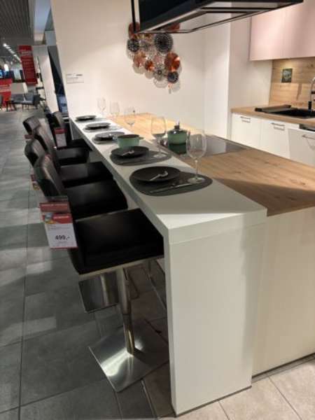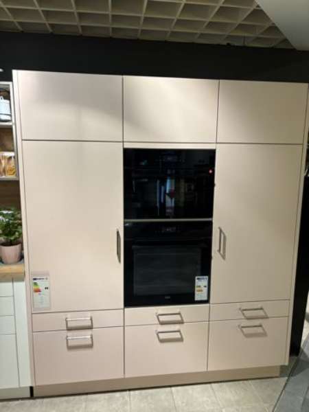 Bemerkung Entdecken Sie die Eleganz und Funktionalität der modernen L-Küche "Pura" von SCHÜLLER KÜCHEN, die Ihre Küchenräume in ein stilvolles Meisterwerk verwandelt. Diese Ausstellungsküche besticht durch ihre feine Farbkombination von weiß matt und zartrosé satin, die dem Raum eine sanfte, einladende Atmosphäre verleiht. Mit einer beeindruckenden Gesamtbreite von 4,96 Metern bietet die Zeile großzügigen Platz für alle Ihre Küchenaktivitäten, während die Insel mit ihren 3,53 Metern und einer Tiefe von 105 cm nicht nur funktional, sondern auch ein optisches Highlight ist. Die durchdachte Gestaltung sorgt für optimale Ergonomie; die Arbeitsfläche der Zeile ist angenehm auf einer Höhe von 955 cm angelegt, ideal ergänzt durch die Inselhöhe von 93 cm. Der Thekenbereich erreicht eine Höhe von 975 cm, perfekt für gesellige Momente oder den schnellen Kaffee zwischendurch. Mit einer Gesamthöhe von 2,15 Metern integriert sich die Küche nahtlos in Ihren Wohnraum und nutzt diesen effizient aus. Diese L-Küche vereint moderne Ästhetik mit praktischen Vorteilen und wird zum Herzstück Ihres Zuhauses.