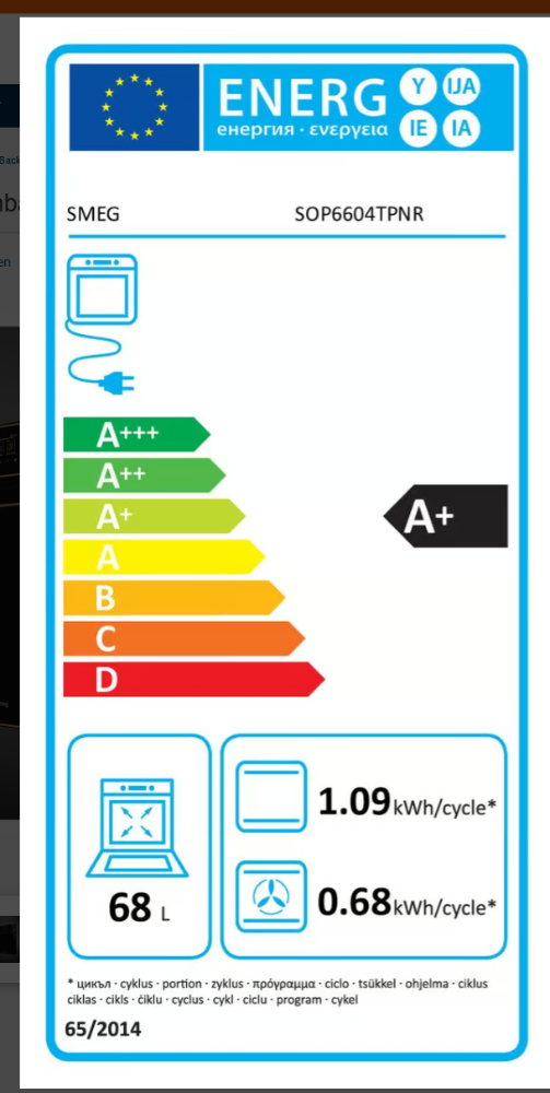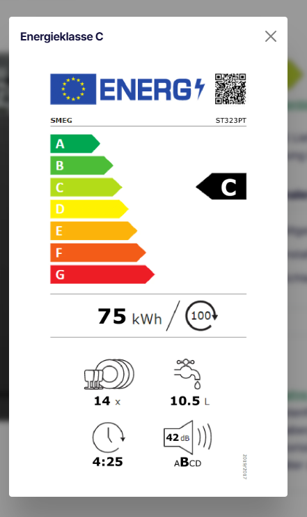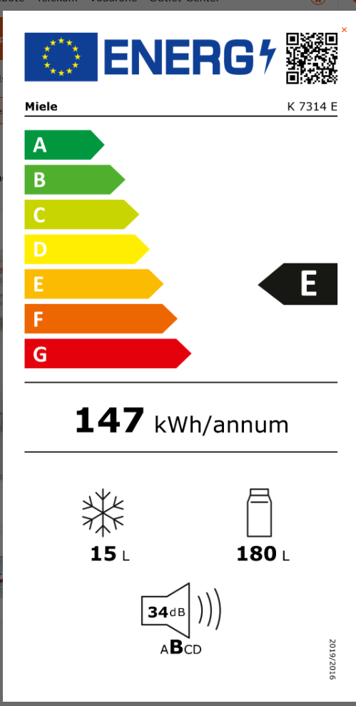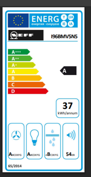 Energieklasse: A (Spektrum: Von A+++ bis D) Energylabel A Spektrum: Von A+++ bis D