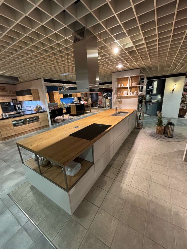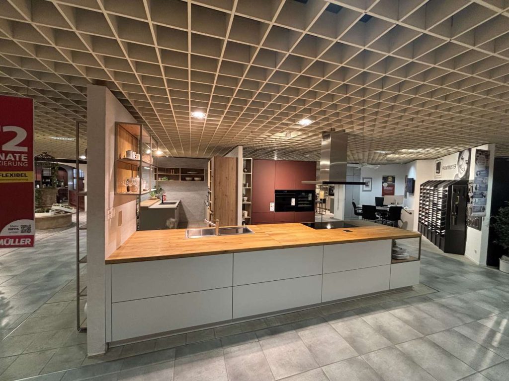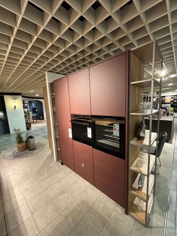 Bemerkung Entdecken Sie die exquisite SIVOLO Inselküche von Sormani, eine wahre Fusion aus Eleganz und Funktionalität. Diese Ausstellungsküche in der faszinierenden Farbkombination aus kristallgraumattel mit indischroten Akzenten und einer Arbeitsplatte aus Asteiche verkörpert moderne Ästhetik auf höchstem Niveau. Die Hochschrankzeile erstreckt sich auf 2,38 Meter und bietet reichlich Stauraum für eine Vielzahl von Küchenutensilien. Mit einer großzügigen Insel von 4,30 Metern und einer Tiefe von 1,18 Metern bietet die SIVOLO nicht nur beeindruckende Dimensionen, sondern lädt auch zu geselligen Kochabenden ein. Die Arbeitsplattenerhöhung auf 91,5 cm und die Gesamthöhe von 2,28 m sorgen für ergonomischen Komfort. Als Ausstellungsküche bietet das Modell höchste Qualität und Präzision in der Verarbeitung, die für Sormani typisch ist. Diese Küche ist mehr als nur ein Arbeitsbereich; sie ist ein Ort der Inspiration und Kreativität, der Ihr Zuhause in eine kulinarische Oase verwandelt.