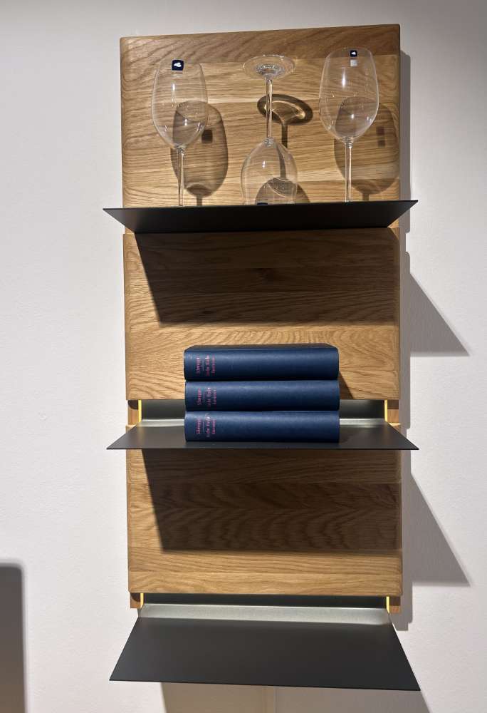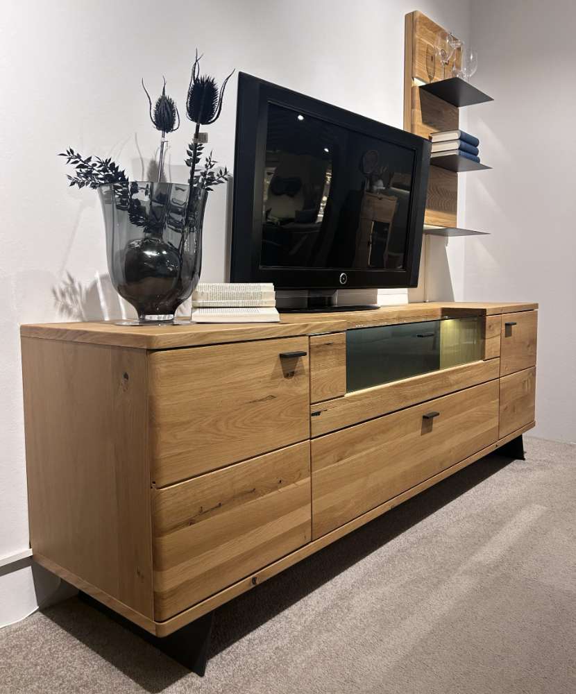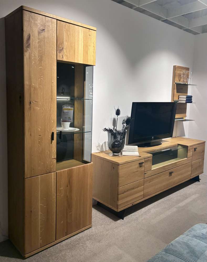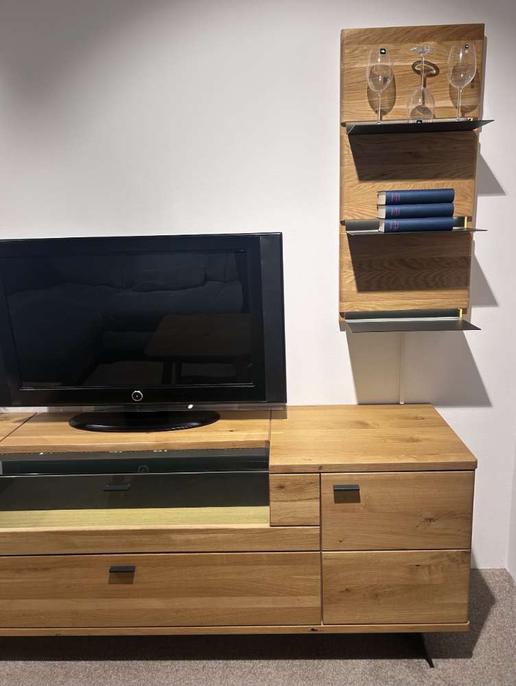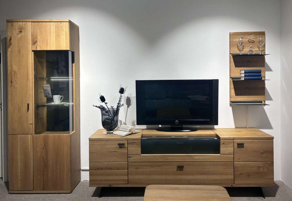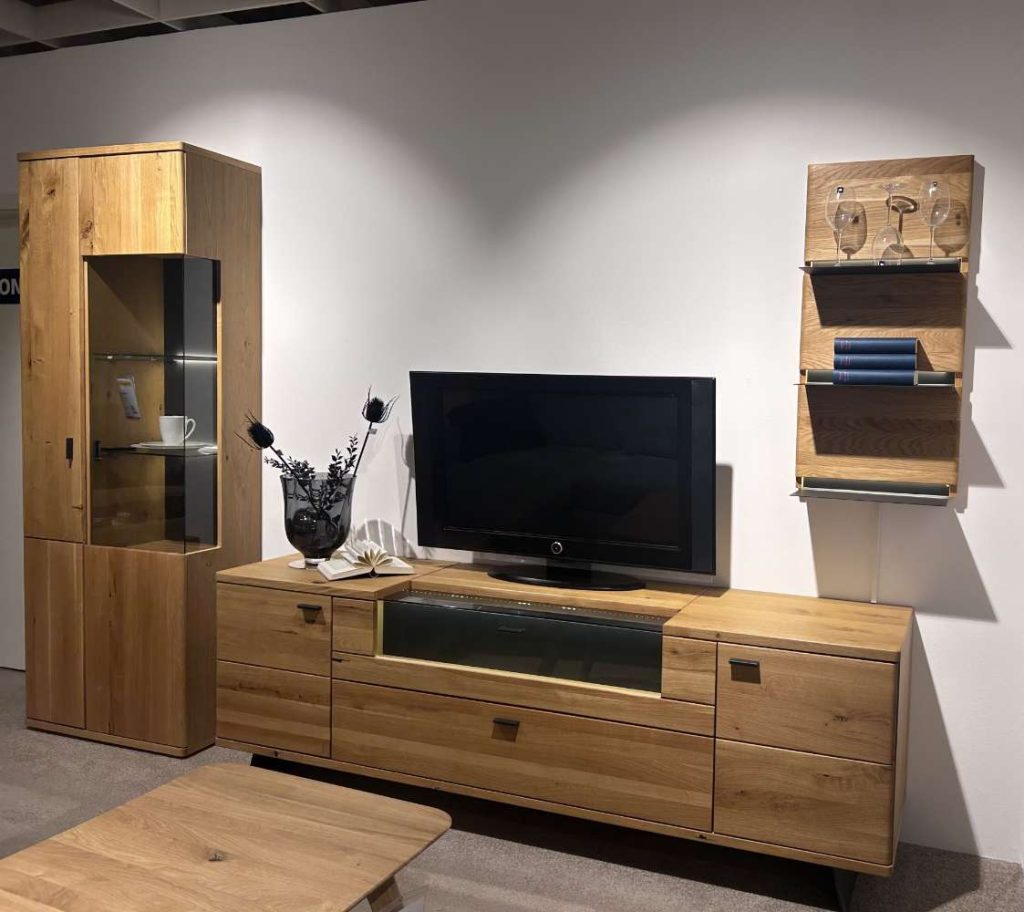 Front mit durchgehender Lamelle best. aus: - Vitrine - TV-Element - Wandregal
