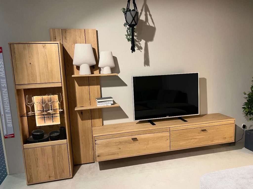 Ein besonderes Highlight ist die integrierte Beleuchtung, die nicht nur die unvergleichliche Schönheit des Holzes betont, sondern auch für eine angenehme und stilvolle Lichtstimmung sorgt. Diese innovative Lösung unterstreicht die Vielseitigkeit des Möbels und hebt Ihre Lieblingsobjekte gekonnt hervor. Ob in einem modernen oder klassischen Ambiente, dieses Möbelstück findet seinen Platz und bereichert jeden Raum mit seiner Präsenz und Funktionalität. Lassen Sie sich von der Schönheit und dem praktischen Design dieses Möbelstücks begeistern und setzen Sie ein Statement in Ihrem Zuhause.