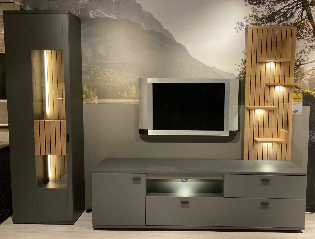 Viking Oak Nachbildung, ABS-Kanten Cosmos Grey, incl. LED-Beleuchtung, ca. 281 x 208 x 50 cm