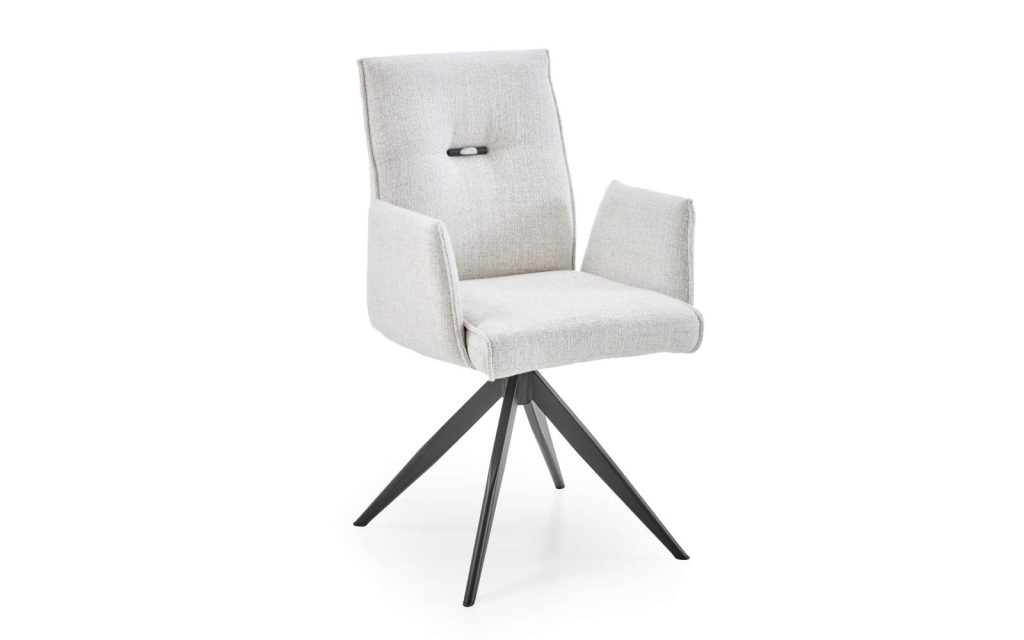 Ausführung Bezug Webstoff Madrid in natural, Stativgestell aus Eisen in schwarz, 360° drehbar mit Rückholfunktion.