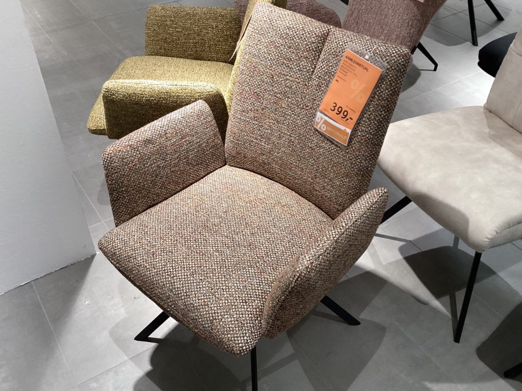 BemerkungDer Esszimmerstuhl Marjan von VENJAKOB überzeugt durch ein überlegtes Design, das Funktionalität und Komfort miteinander vereint. Gefertigt aus hochwertigem Stoff, lädt dieser Stuhl zu gemütlichen Stunden am Esstisch ein. Die klaren Linien und die schlichten, doch modernen, anthrazitfarbenen Metallfüße verleihen dem Stuhl eine zeitlose Eleganz, die sich nahtlos in verschiedene Einrichtungsstile einfügt. Mit seiner praktischen Drehfunktion bietet Marjan zusätzlichen Komfort, während die Rückholfunktion sicherstellt, dass der Stuhl stets in seine Ursprungslage zurückkehrt, wenn er nicht in Gebrauch ist. Der komfortabel gestaltete Sitz misst 61 cm in der Breite und 88 cm in der Höhe, wobei er eine Tiefe von 52 cm bietet, die ausreichend Unterstützung und Bequemlichkeit bietet. Da es sich um Ausstellungsware handelt, kann dieser Stuhl zudem mit einem attraktiven Preis-Leistungs-Verhältnis punkten. Marjan ist die ideale Wahl für all jene, die Funktionalität und Stil in ihrem Esszimmer vereinen möchten.