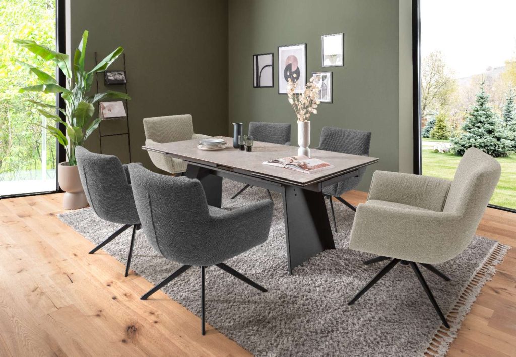 matt, B/H/T ca. 200-290x76x100-145 cm, in Länge und Breite ausziehbar.