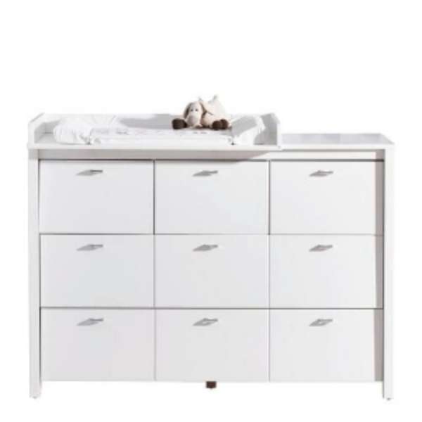 Bemerkung BABYZIMMER BESTEHT AUS: /WICKELKOMMODE MIT 9 SCHUBLADEN + WICKELAUFSATZ+UNTERSTELLREGAL (B/H/T CA. 135X95X50CM ) / KLEIDERSCHRANK 3 TÜRIG (B/H/T CA. 135X188X55CM) / BABYREGAL MIT 5 EINLEGEBODEN (B/H/T CA. 135X188X55CM) / WANDBOARD (B/H/T: CA. 90/35/25 CM)