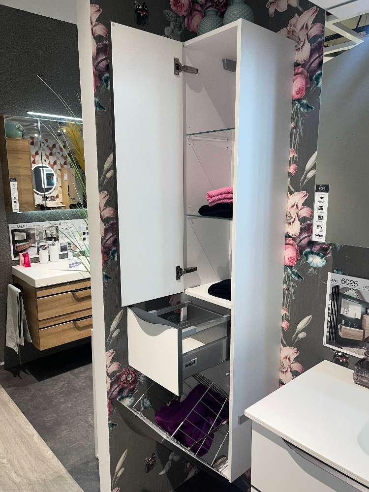 Waschtisch ca. 117cm breit, Hochschrank ca. 30cm breit
