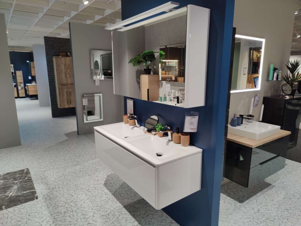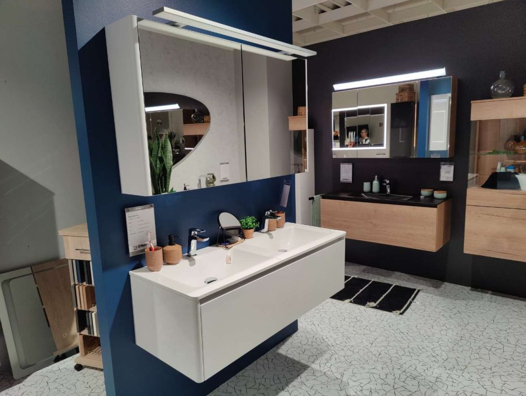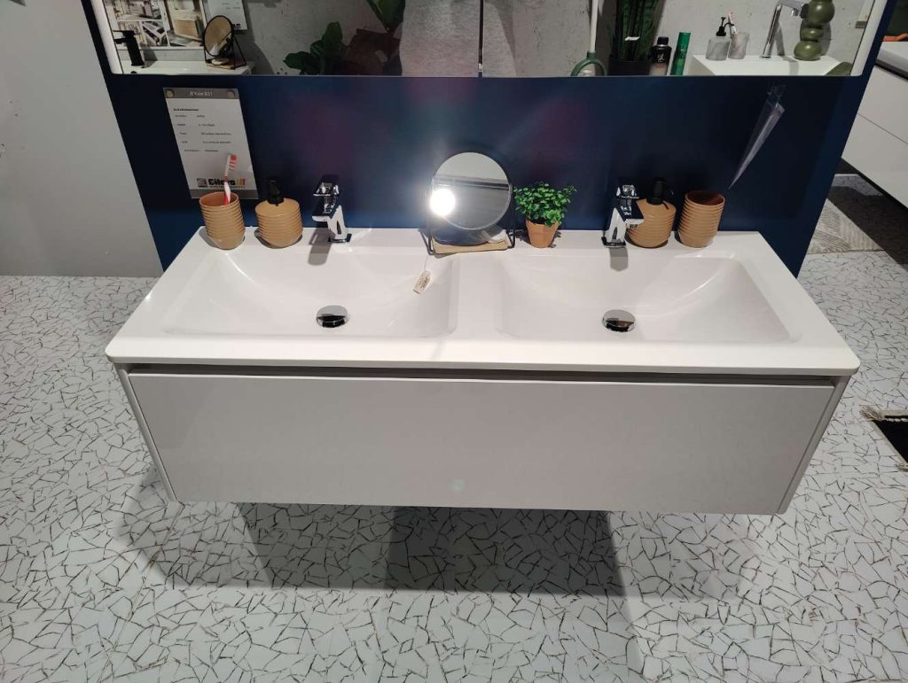 Gefertigt aus robustem Holzwerkstoff, bietet das Set die notwendige Beständigkeit und Langlebigkeit für den täglichen Gebrauch. Das Herzstück bildet ein elegantes Waschbecken aus Mineralguss, das nicht nur durch seine glatte Oberfläche, sondern auch durch seine praktische Form beeindruckt. Zudem sorgt die integrierte Beleuchtung für eine angenehme Atmosphäre und setzt das Möbelstück perfekt in Szene.