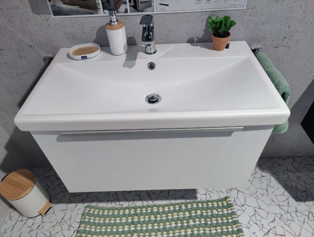 Die Oberflächen in formschönem Dekor harmonieren perfekt mit dem weißen matten Keramik-Waschbecken, das sowohl funktional als auch pflegeleicht ist. Ein besonderes Highlight des Möbelsets ist die integrierte Beleuchtung, die für ein angenehmes Wohlfühlambiente sorgt und die Funktionalität zusätzlich unterstützt. Als Ausstellungsware bietet dieses Set eine erstklassige Gelegenheit, stilvolles Design zu einem attraktiven Preis zu genießen. Mit dem Badmöbel-Set von PELIPAL wird Ihr Badezimmer zu einer Oase der Entspannung und des modernen Stils.