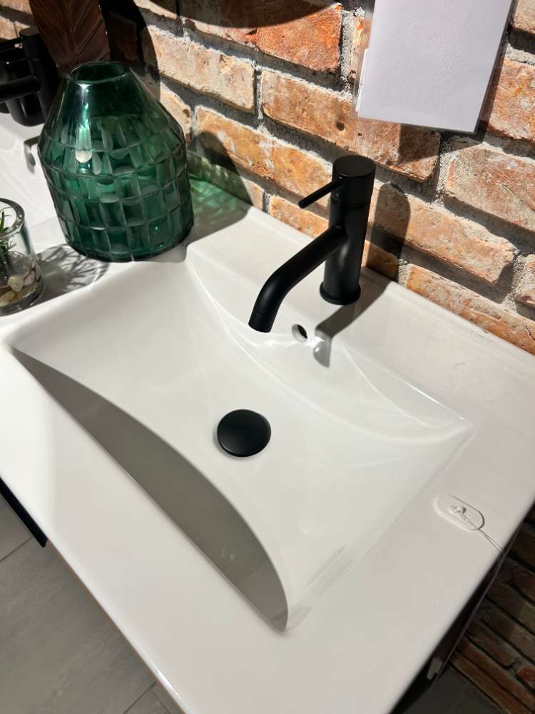 Bestehend aus: - Waschtischkombination - Spiegel rund - Einhebelmischarmatur - Click Clack Ablauf Matt
