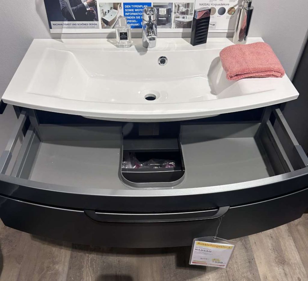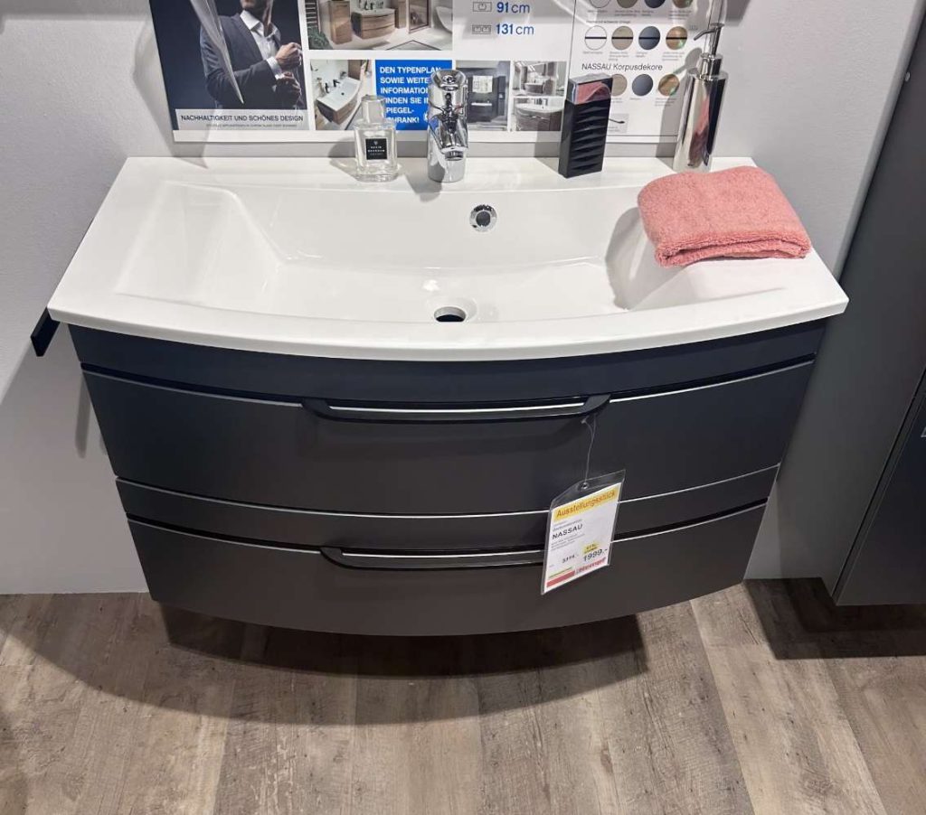 - Waschtischkombination mit Mineralmarmor-Waschtisch ca. 90 cm breit