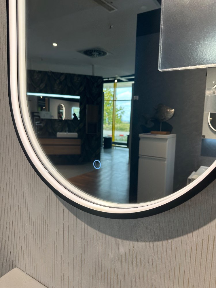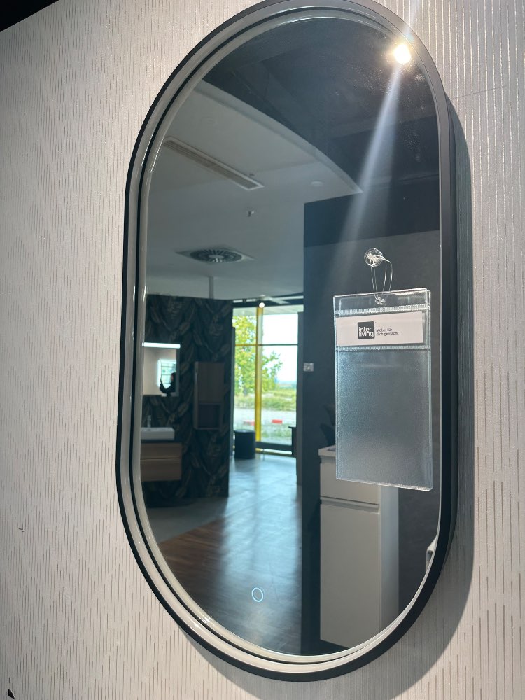 Bemerkung Zeitlose Badkombination für kleine Räume gut geeignet bestehend aus: Flächenspiegel oval schwarz inkl. Beleuchtung mit Sensorschalter, Keramik-Waschtisch weiß, Waschtisch-Unterschrank inkl. Innenbeleuchtung und Organisationseinsatz für Kleinartikel ca. B/T 620x510mm, Unterschrank, B/H/T ca. 302 x 480 x 325 mm, ohne Mischbatterie