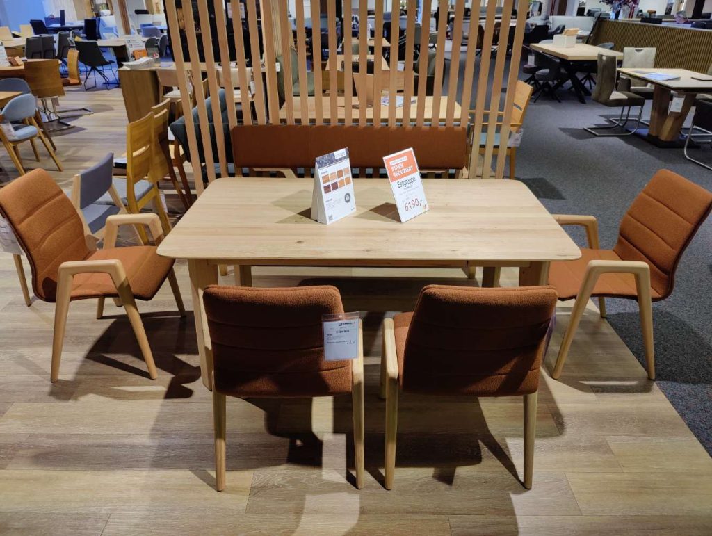 Als Ausstellungsware in der Kategorie Eckbänke von WIMMER bietet Nyon nicht nur Funktionalität, sondern auch ein ausgesprochen stilvolles Design. Seine rustikale Eleganz und der hochwertige Materialmix machen diesen Esstisch zu einem Herzstück jeder Wohnküche oder jedem Essbereich. Die sorgfältige Verarbeitung und das durchdachte Design garantieren, dass dieses Möbelstück im Laufe der Jahre sowohl seinen visuellen Reiz als auch seine Funktionalität behält.