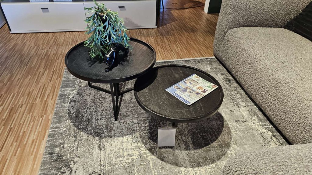 Bemerkung Das Modell 862209-686 von GUTMANN ist ein exklusives Möbelstück, das in jedem Raum einen Hauch von Raffinesse und Eleganz verleiht. Diese Ausstellungsware beeindruckt durch ihre hochwertige Ausführung. Die Platte ist mit einem Echtsteinfurnier verkleidet und schwarz lackiert, was ihr ein luxuriöses und zeitloses Aussehen verleiht. Der hochgestellte Plattenrand sorgt für zusätzliche Tiefe und Charakter und betont die exquisite Verarbeitung. Das Gestell besteht aus pulverbeschichtetem Metall in Schwarz, was nicht nur für Stabilität und Langlebigkeit sorgt, sondern auch einen modernen, industriellen Touch hinzufügt. Mit einem Durchmesser von etwa 58 cm und einer Höhe von ca. 28 cm eignet sich dieses Möbelstück ideal für unterschiedliche Räume und kann als stilvoller Beistelltisch oder dekoratives Element verwendet werden. Die Kombination aus den hochwertigen Materialien und dem eleganten Design macht diesen Tisch zu einem wahren Blickfang in jedem Zuhause.