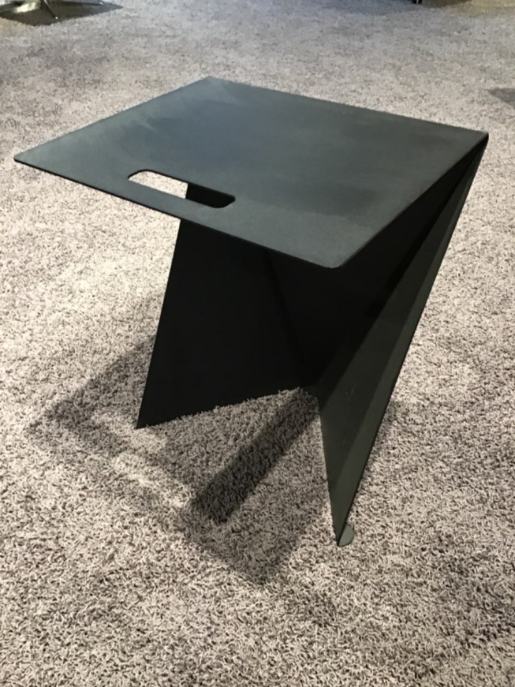 Bemerkung KollektionSusa 1 Metall geformt Schwarzgrau RAL 7021 mit Eingriff und Gleitern ca. L 40 x B 35 x H 48cm Musterstück zur Abholung wie besehen