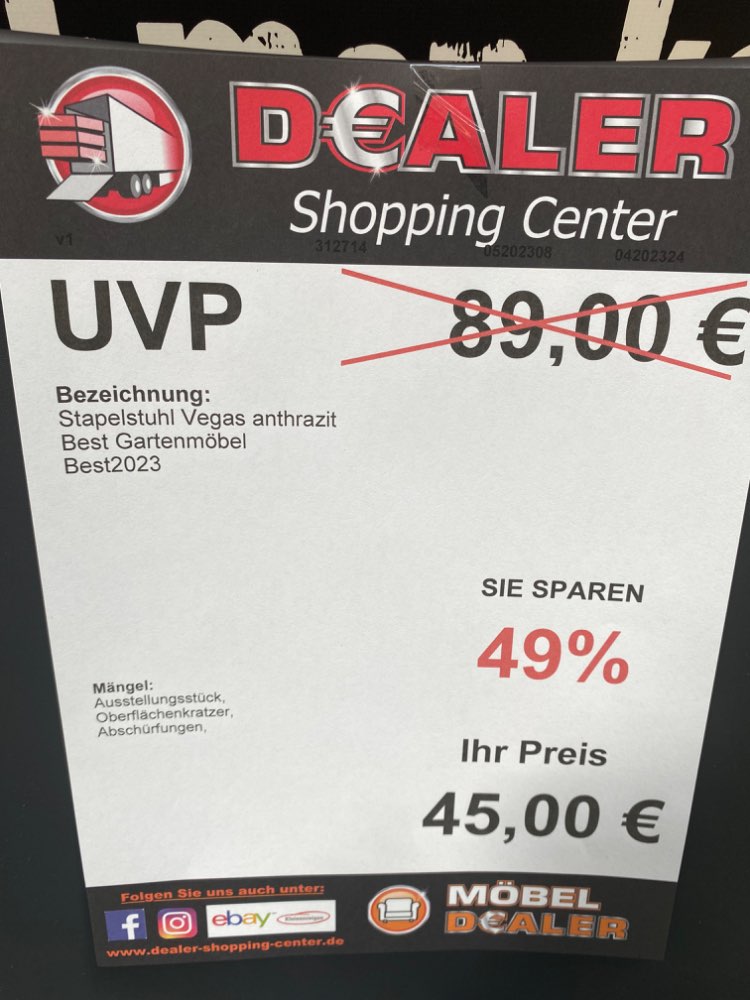 Best Gartenmöbel / Stuhl / Stapelsessel grau statt 89€