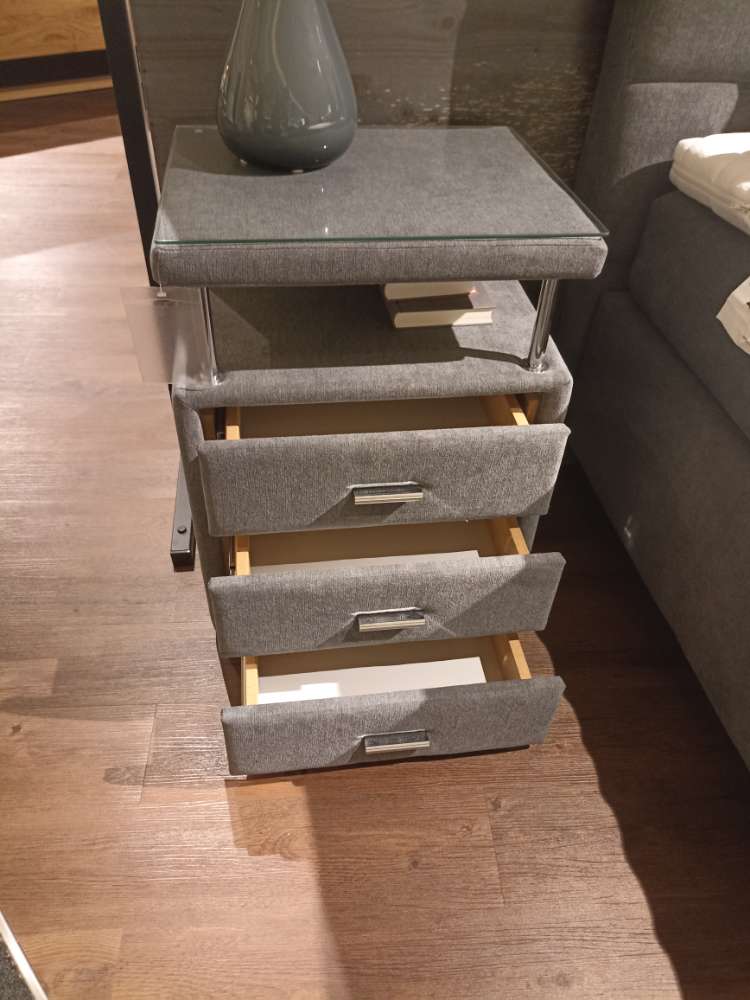 2x Nachtkonsole (mit 3 Schubladen und Glasplatte, Stoff grau, ca. 51 x 66 x 42 cm)