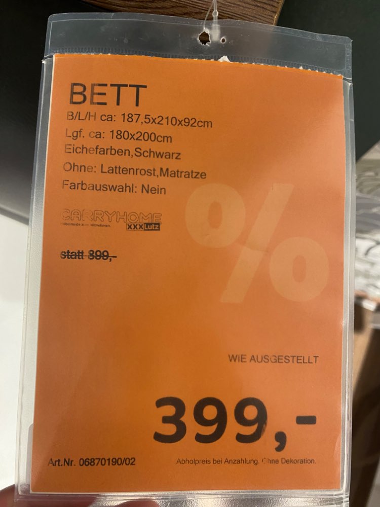B/L/H ca: 187,5×210x92cm Lgf. ca: 180x200cm Ohne Lattenrost ohne Matratze