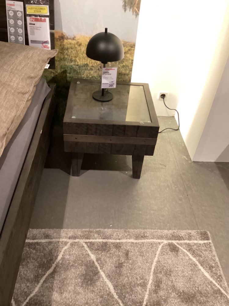 Dieses Ausstellungsstück kommt mit einem integrierten Nachttisch, der das Design harmonisch ergänzt. Beachten Sie bitte, dass das Bett ohne Lattenrost und Matratze geliefert wird. Aufgrund seiner Eigenschaft als Ausstellungsware können kleine Macken vorhanden sein, die jedoch die Authentizität und den rustikalen Charme des Bettes noch unterstreichen.