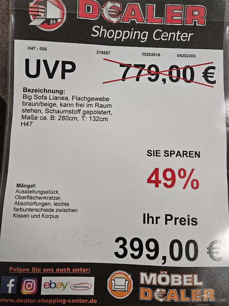 Big Sofa Lianea Flachgewebe Braun/beige statt 779€