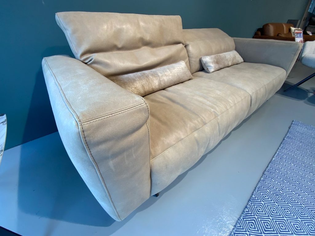 3,5-Sitzer Nr. 35 Breite 241 cm Leder Nevada Farbe Taupe 16254 Dicke Halbkappnaht Metallfuß schwarz M058 legere Polsterung Wellen- und Faltenbildung warentypisch