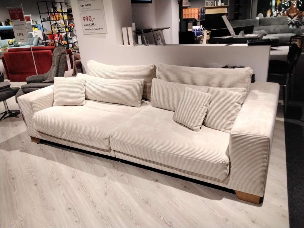 AusführungStellmaß ca. 286 x 90 x 141 cm, Bezug komplett: Lincoln 03 PG 2, inkl. 2 großen Rücken-, 2 großen Nierenund, 3 Zierkissen, Holzfüße: Eiche Natur