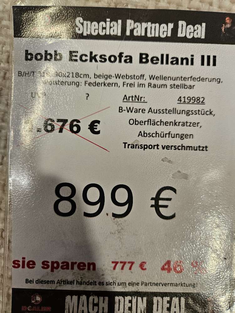 Bobb Ecksofa Bellani lll Webstoff Beige statt 1676€