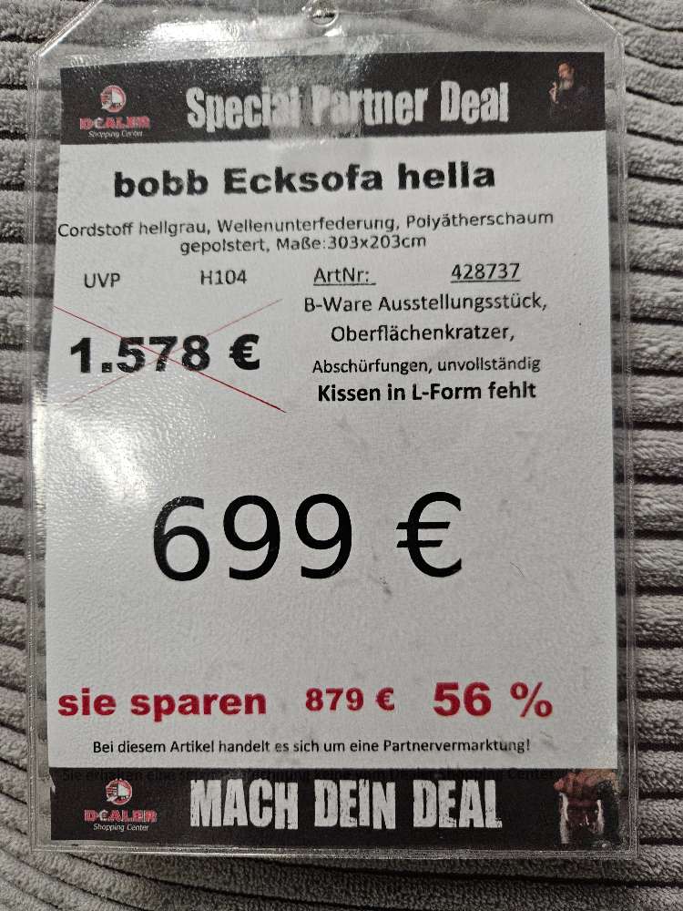 bobb Ecksofa Hella Cordstoff hellgrau statt 1578€