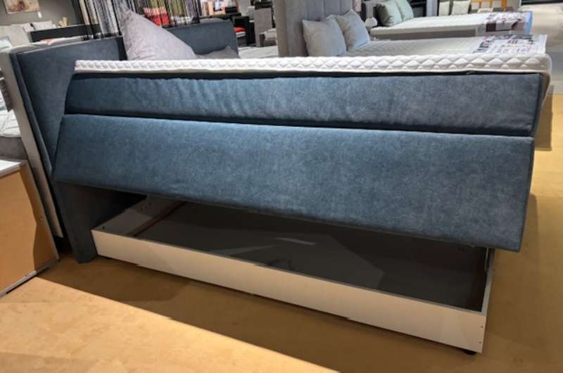 Unterbau: Bonellfederkern, 2x 7-Zonen Taschenfederkern 1x H4 und 1x H5 (bis 130kg) , Topper Gel 5cm, Bettkasten seitliche Öffnung, Liegefläche ca. 180x200cm (Matratzen geteilt)