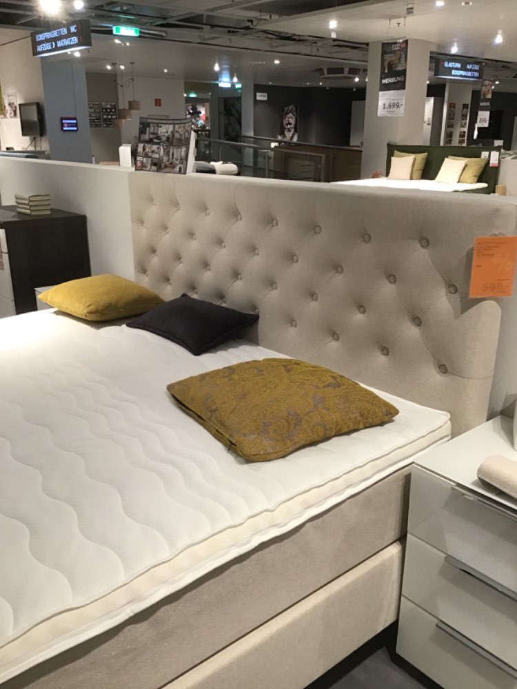 BemerkungEntdecken Sie luxuriösen Schlafkomfort mit unserem hochwertigen Boxspringbett, das Ihnen sowohl Stil als auch Funktionalität bietet. Als Ausstellungsware präsentiert es sich in einem ausgezeichneten Zustand und ist bereit, Ihr Schlafzimmer durch seine elegante Erscheinung aufzuwerten. Das Bett ist mit einem bequemen Topper ausgestattet, der zusätzlichen Komfort gewährleistet und ein angenehmes Liegegefühl verspricht. Dieses Boxspringbett bietet nicht nur erholsamen Schlaf, sondern auch die Flexibilität, sich an Ihre individuellen Bedürfnisse anzupassen. Lassen Sie sich von dieser Kombination aus Qualität, Komfort und ansprechendem Design begeistern.