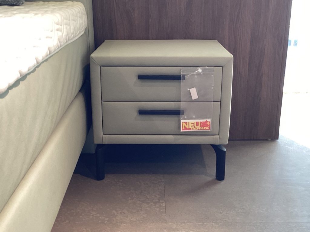 BemerkungDas Boxspringbett Caira in mintgrüner Farbgebung bringt einen Hauch von Frische und Eleganz in jedes Schlafzimmer. Die großzügigen Maße von 180x200 cm bieten ausreichend Platz für erholsame Nächte. Das Highlight dieses Bettes ist das gepolsterte Kopfteil, das sowohl Komfort als auch einen stilvollen Akzent bietet. Als praktische Ergänzung zum Bett sind zwei Nachtschränke inklusive, die ausreichend Stauraum bieten und das Gesamtbild harmonisch abrunden. Dieses Ausstellungsstück besticht nicht nur durch seine visuelle Attraktivität, sondern auch durch seine Funktionalität. Ideal für all jene, die Wert auf designorientierte Einrichtung legen und gleichzeitig den Komfort eines Boxspringbettes genießen möchten. Der mintgrüne Farbton verleiht dem Schlafzimmer eine beruhigende Atmosphäre und lässt sich vielseitig mit verschiedenen Einrichtungsstilen kombinieren. Das Modell Caira ist die perfekte Wahl für ein stilvolles und komfortables Schlaferlebnis.