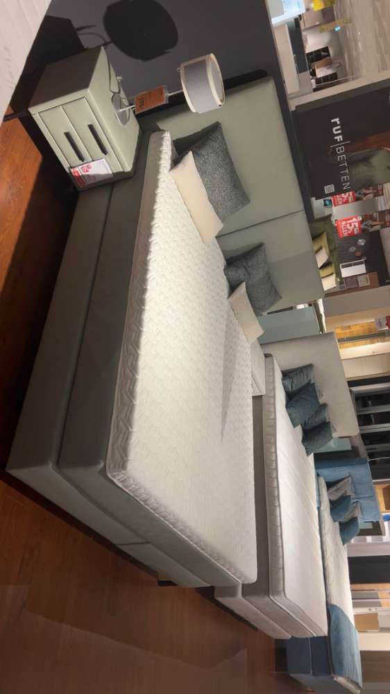 BemerkungBoxspringbett von FEY in mintgrün mit 2 Nachtkonsolen und den Zierkissen
