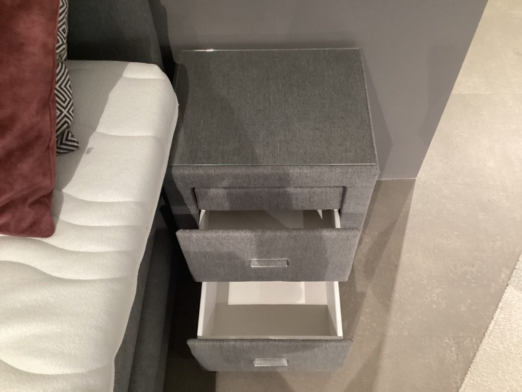 BemerkungDas Boxspringbett Miami Gold bietet ein ultimatives Schlaferlebnis, das durch sorgfältige Gestaltung und hochwertige Materialien besticht. Dieses Ausstellungsstück beeindruckt durch seinen luxuriösen Komfort und die stilvolle Ästhetik, die jedes Schlafzimmer in eine Oase der Entspannung verwandelt. Mit seiner großzügigen Liegefläche und der ergonomischen Konstruktion sorgt es für optimalen Schlafkomfort. Zum besonderen Highlight des Miami Gold gehören zwei Topper, die zusätzlichen Liegekomfort gewährleisten. Diese verhelfen zu einer individuellen Anpassung an Ihre Schlafbedürfnisse und fördern den gesunden und erholsamen Schlaf. Ebenfalls im Lieferumfang enthalten sind zwei Nachtschränke, die sowohl praktische Ablageflächen als auch einen stilvollen Akzent für Ihr Schlafzimmer bieten. Diese Kombination aus Funktionalität und Design macht das Miami Gold nicht nur zu einem Möbelstück, sondern zu einem Ort der Erholung und des Wohlbefindens.