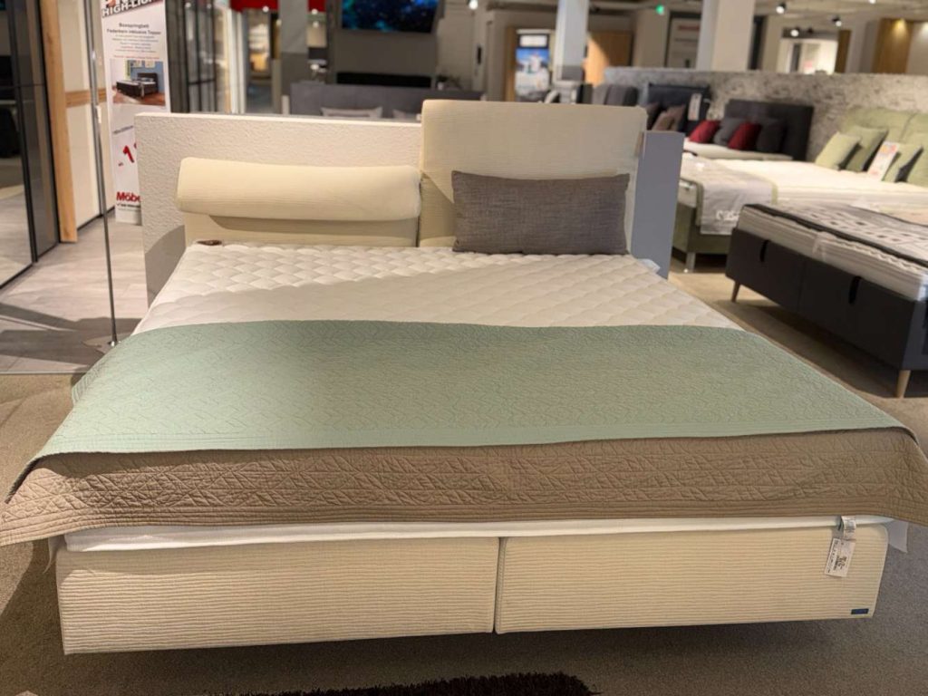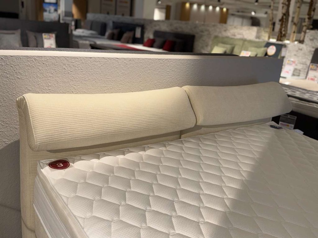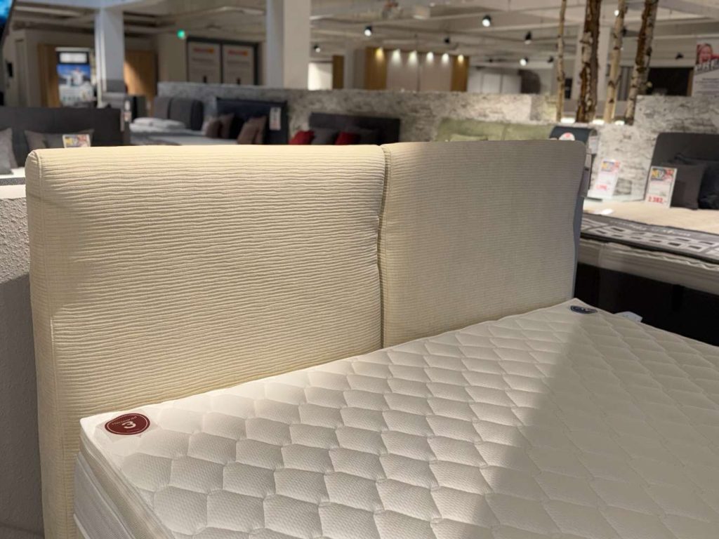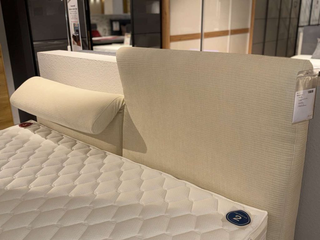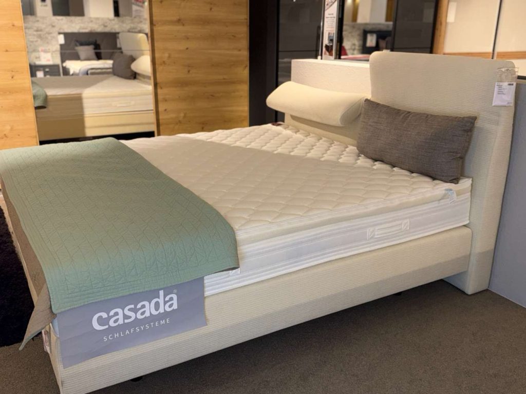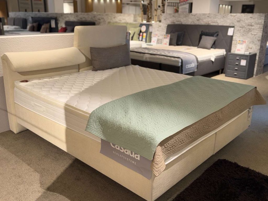 BemerkungDas System Boxspringbett von CASADA präsentiert sich als Ausstellungsware in einem eleganten Cord-Design, das jedem Schlafzimmer eine luxuriöse Note verleiht. Dieses stilvolle Möbelstück bietet nicht nur optische Eleganz, sondern auch höchsten Komfort durch seine verstellbare Kopfteilfunktion. Die Matratze in der Ausführung Top T H3/H2 passt sich perfekt an individuelle Schlafbedürfnisse an und unterstützt so einen erholsamen Schlaf. Das Bett beeindruckt weiterhin durch seine Schwebeoptik der Füße, die ihm ein modernes und schwebendes Erscheinungsbild verleihen. Mit den Maßen von ca. 180x200 cm bietet es großzügigen Platz, um entspannte Nächte zu verbringen. Beachten Sie, dass die abgebildeten Kissen und das Plaid lediglich als Dekoration dienen und nicht zum Lieferumfang gehören. Dieses Boxspringbett vereint Funktionalität mit anspruchsvoller Ästhetik und ist eine ideale Wahl für alle, die Wert auf Stil und Komfort legen.