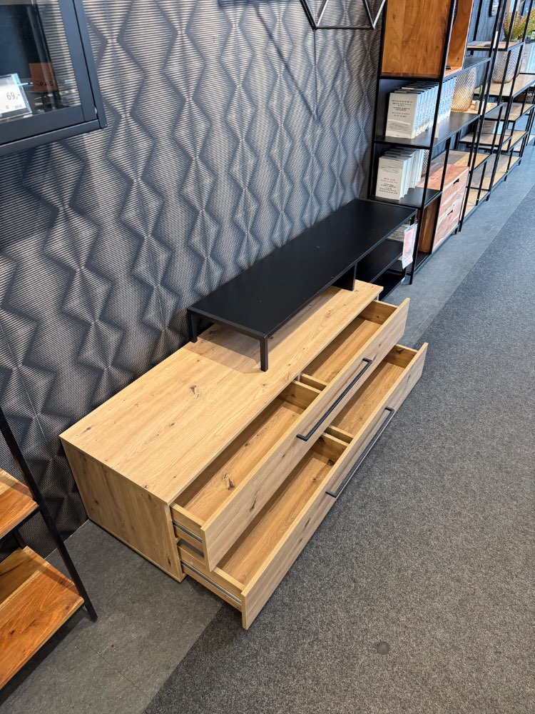 !!!Ausstellungsware!!! !!!Selbstabbau und Transport!!! !!!Kleine Macken!!! Lowboard B/H/T ca. 200/ 57/ 45 cm. Eiche Artisan, Metall schwarz