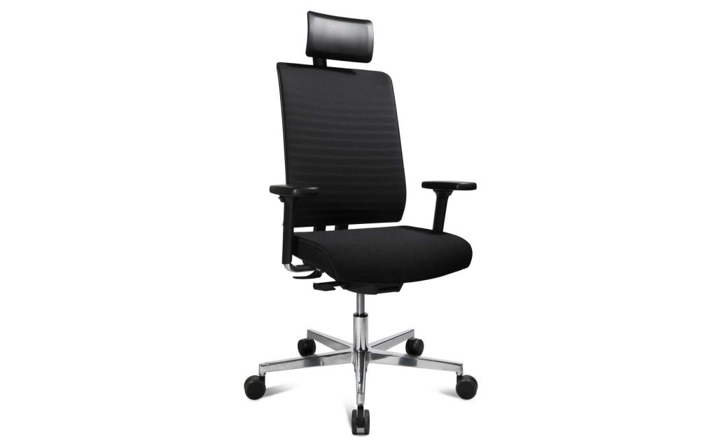 Bemerkung Dieser Drehstuhl ist perfekt für Home-Office, der bequeme Flachsitz mit Sitztiefenverstellung zur optimalen Anpassung auf die Körpergröße, stufenlose Sitzhöhenverstellung dank Toplift. Die Punktsynchron-Mechanik und die Federkraft sind individuell auf das Körpergewicht einstellbar. Der Sitz ist mehrfach arretierbar, inklusive Armlehnen, die in der Höhe verstellbar sind, verstellbare Kopfstütze und Lordosenstütze. Das polierte Aluminiumfußkreuz ist mit universal Sicherheitsdoppelrollen für alle Böden ausgestattet.