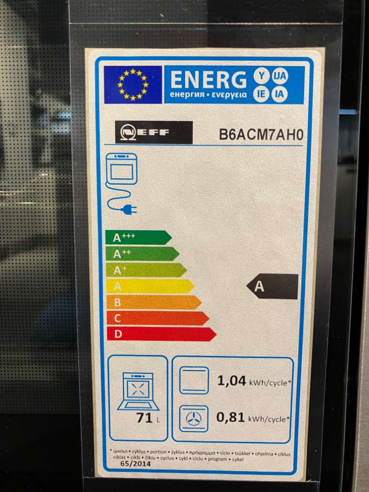Energieklasse: A (Spektrum: Von A+++ bis D) Energylabel A Spektrum: Von A+++ bis D