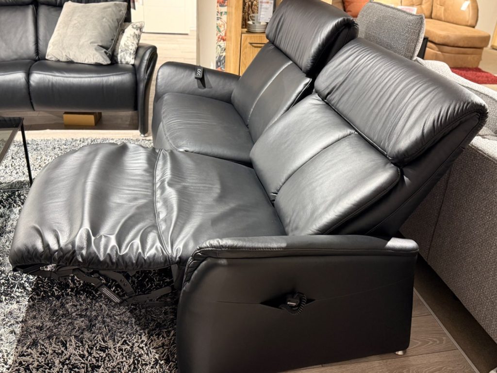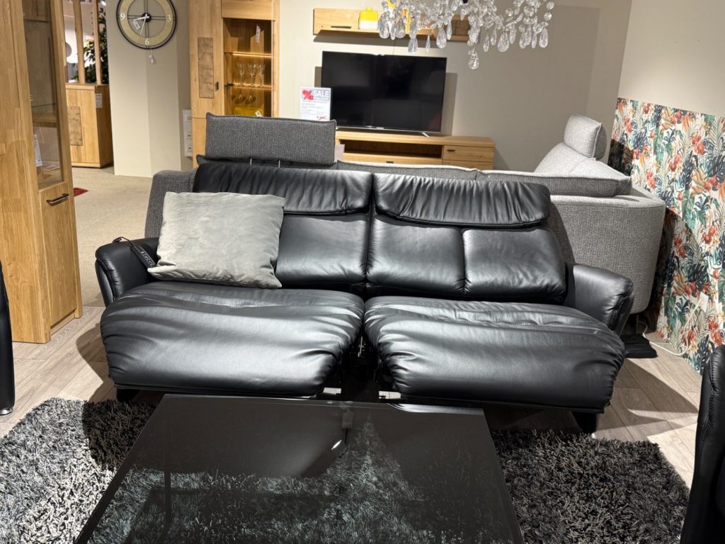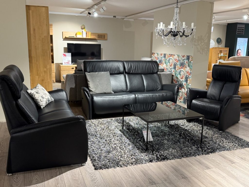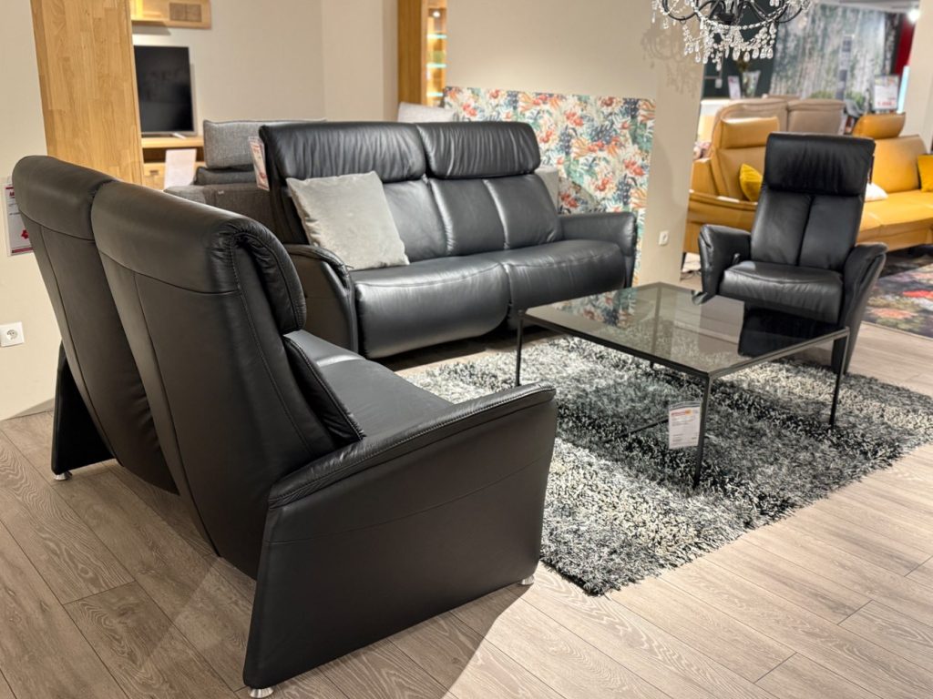 Bemerkung Das Modell Cansas von CASADA bietet ein luxuriöses Sitzvergnügen, das sich perfekt in jeden Wohnraum einfügt. Gefertigt aus edlem Echtleder, besticht dieses Ensemble als Ausstellungsware mit seiner langlebigen Longlife Lederqualität und bringt zeitlose Eleganz in Ihr Zuhause. Der 3-Sitzer, ausgestattet mit raffinierten Funktionen wie dem elektrischen Wallfree-Beschlag, Kopfteil- und Sitzneigungsverstellung, sorgt für individuellen Komfort auf Knopfdruck. Dank des Akkus und der Ladestation sind keine störenden Kabel mehr nötig. Ergänzt wird das Set durch einen Sessel mit manueller Cumuly-Funktion, dessen Rückenlehne durch eine Gasdruckfeder sanft einstellbar ist. Die edlen Aluminiumfüße verleihen dem Möbel Ensemblen eine moderne und stilvolle Note. Mit den großzügigen Maßen und den inkludierten Kissen garantiert die 3-2-1 Gruppe höchstmöglichen Komfort und lädt zum Entspannen ein. Entdecken Sie, wie CASADA’s Cansas Ihre Einrichtung auf ein neues Niveau hebt. Art: 122258/01+02 + 122260/01 Dieser Artikel befindet sich in unseren Filialen Ulmen,Mayen & Neuwied. Wir sind für Anfragen Dienstags-Freitags von 9:30-18:30, Samstags bis 16 Uhr erreichbar! Jm nachhaltig Energie einzusparen, verzichten wir seit dem vergangenen Jahr auf die Ladenöffnung am Green Monday und werden somit mit einer Vielzahl an weitere Maßnahmen unserer ökologischen Verantwortung gerecht. Bitte berücksichtigen Sie dies bei Ihren Anfragen um lange Antwortzeiten zu vermeiden. Besten Dank für Ihr Verständnis!