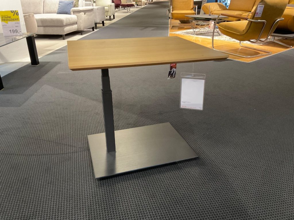 BemerkungDas Modell 1429 verkörpert eine harmonische Kombination aus natürlicher Eleganz und funktionalem Design. Diese Ausstellungware, gefertigt aus hochwertiger Wildeiche bianco, bringt mit ihrer furnierten und lackierten Oberfläche eine warme, einladende Atmosphäre in jeden Raum. Der Tisch passt sich dank seiner klaren Linienführung und dem zeitlosen Material ideal in verschiedene Einrichtungsstile ein. Unterstützt von einem stabilen Metallgestell in modernem Anthrazit schafft er eine Balance zwischen Robustheit und Aktualiät. Mit seinen praktischen Maßen von 70 cm Breite, 47 cm Höhe und 60 cm Tiefe bietet er ausreichend Platz, ohne aufdringlich zu wirken. Besonders praktisch sind die integrierten Extras: die höhenverstellbare Liftmechanik ermöglicht ein stufenloses Anheben auf bis zu 65 cm und dank der Rollen lässt sich der Tisch mühelos bewegen. Perfekt geeignet für flexible Wohnräume, wo Anpassungsfähigkeit und Stil Hand in Hand gehen.