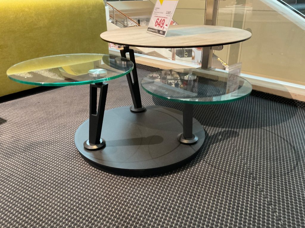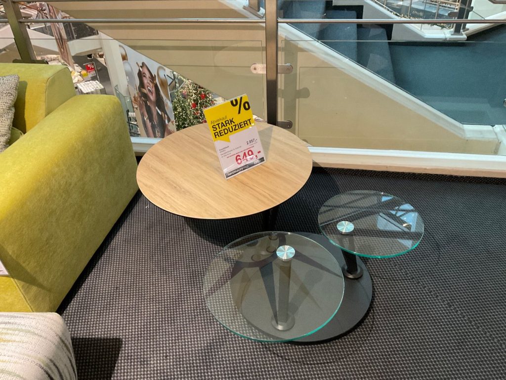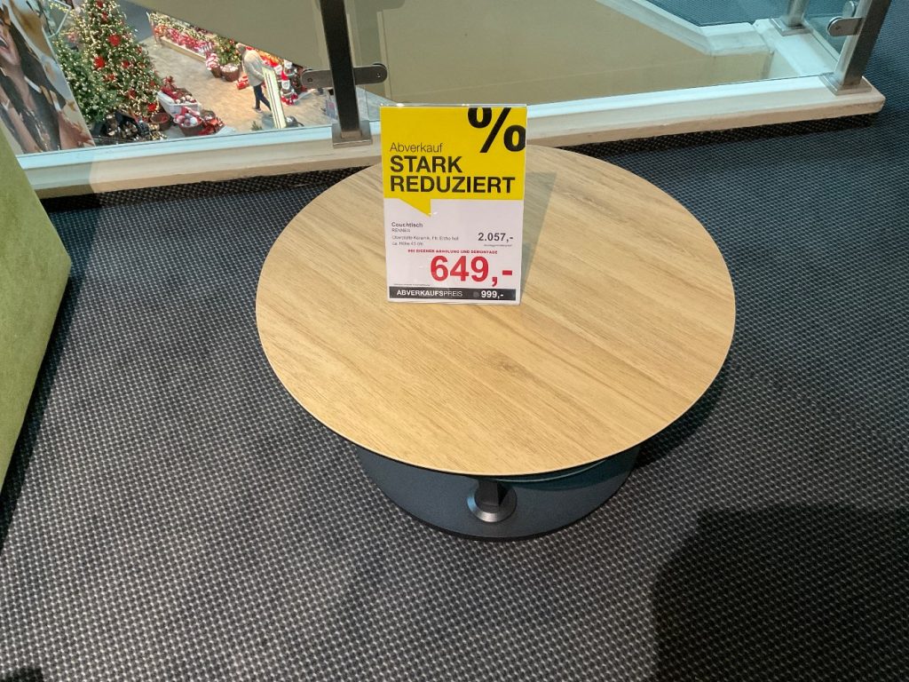Bemerkung Der Couchtisch Rennes verbindet modernes Design mit funktionaler Eleganz und ist der ideale Begleiter für Ihr Wohnzimmer. Hergestellt aus hochwertiger Keramik, bietet dieser Tisch nicht nur eine elegante Ästhetik, sondern auch Langlebigkeit und Robustheit. Die Oberfläche in Eichenoptik verleiht dem Tisch eine warme, natürliche Ausstrahlung, die durch die kühle Raffinesse des schwarzen, lackierten Stahlgestells perfekt ergänzt wird. Dieser Tisch ist ein Ausstellungsstück und überzeugt durch seine innovative Drehfunktion, die Ihnen Flexibilität und Komfort beim Einrichten bietet. Mit einer Höhe von ca. 43 cm fügt sich der Rennes nahtlos in verschiedene Raumkonzepte ein und schafft einen stilvollen Mittelpunkt in jeder Wohnumgebung. Lassen Sie sich von der harmonischen Kombination aus Keramik, Holz und Metall inspirieren und genießen Sie ein Möbelstück, das gleichsam praktisch wie ästhetisch ist. Zurbrüggen Listenpreis 2.057,- Abholpreis. 649,- Abholpreis bei eigener Demontage 649,-